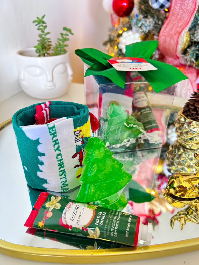 Set de medias, jabón orgánico y crema de manos; si es para mujer se sustituye por...