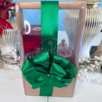 Cajita en forma de árbol con mini espumoso, bombones Ferrero Rocher y frutos secos.