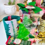 Cajita en forma de árbol con mini espumoso, bombones Ferrero Rocher y frutos secos.