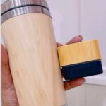 Vaso de madera, mini bocina en madera y destapador personalizado.