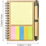 Libreta de apuntes con lapicero ecológico y tres tipos de post-it.