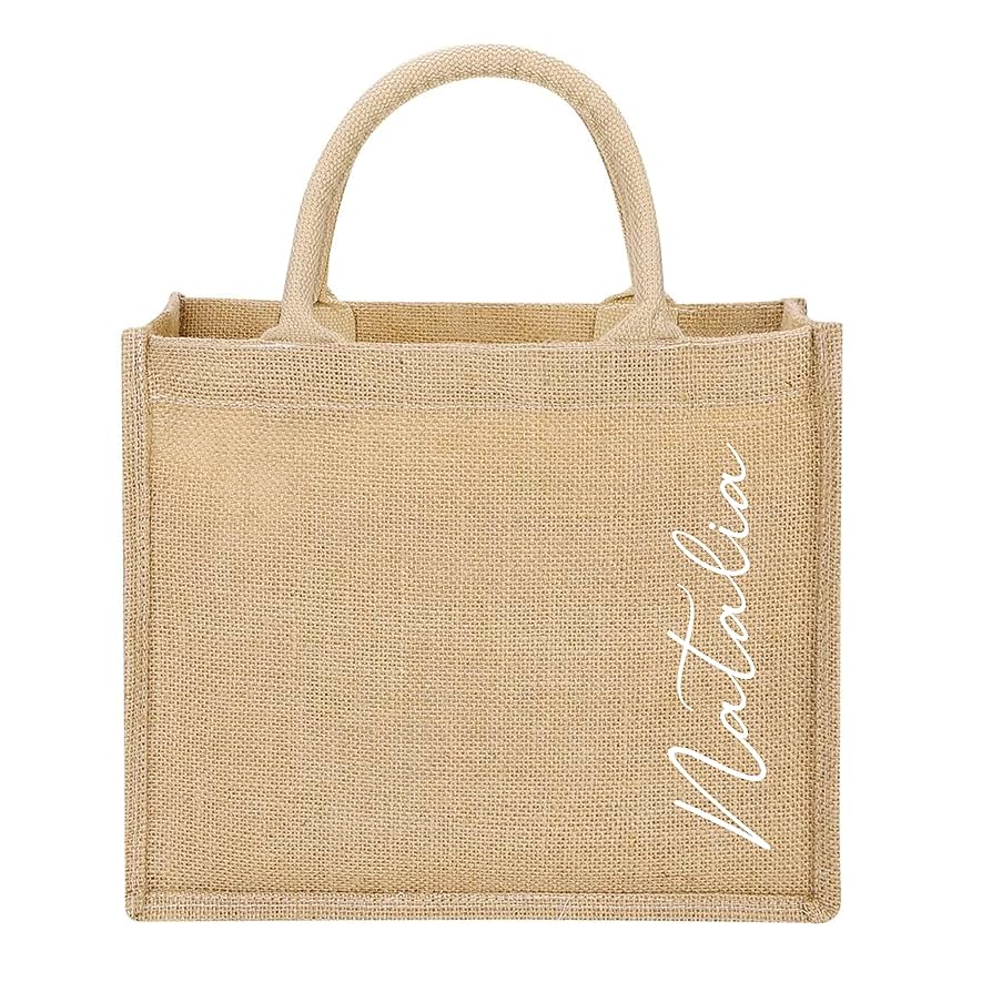 Bolso de yute y canvas personalizado; medidas 9×11 pulgadas.