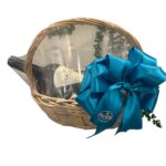 Cesta de cava JP Chenet, panettone, bola navideña rellena de frutos secos y tarjeta personalizada.
