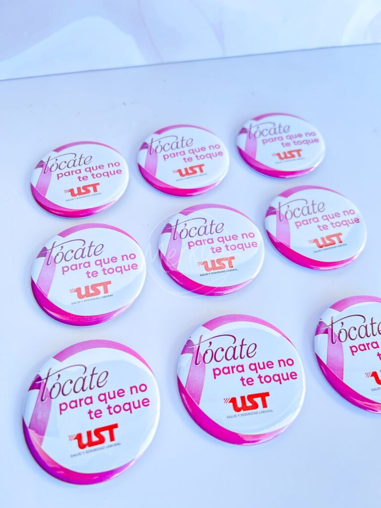 Botones promocionales medianos para actividades de concienciación.