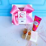 Cajita con jabón orgánico artesanal y crema de manos personalizadas.