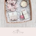 Cajita con jabón orgánico artesanal y crema de manos personalizadas.