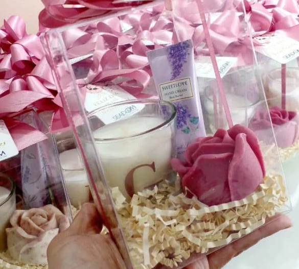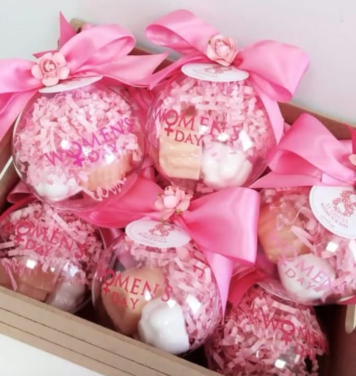Detalle femenino, esmalte, bath bombs, jabón orgánico y brillo de labios.