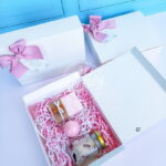 Detalle femenino, esmalte, bath bombs, jabón orgánico y brillo de labios.
