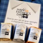 Taza cristal personalizada con 3 galletas o 3 polvorones en caja decorada.