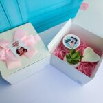 Brochas, vaso vino personalizado, sales de baño y crema de manos.