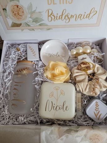 Vaso de cristal, scrunchie de gomita, aretes en base, jabón floral y joyero de viaje personalizado.