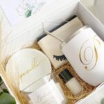 Vela aromática, esmalte, scrunchie, cadenita sencilla, jabón facial líquido y copa personalizada.
