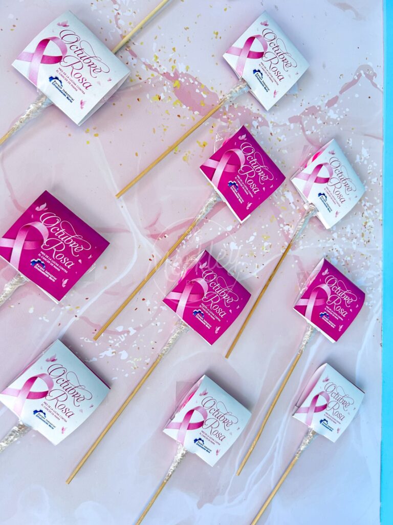 Base con chocolates Hershey’s Nuggets con motivo del cáncer de mama.