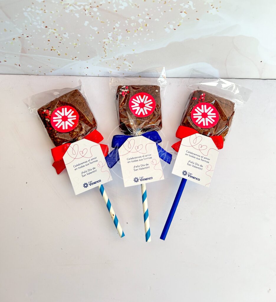 Paleta de brownie decorada, ideal para un detalle especial.