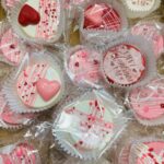 Galleta de mantequilla en forma de corazón con base decorativa.