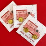 Monedas de chocolate personalizadas con temática de San Valentín.