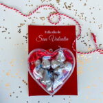 Cajita transparente con chocolates Hershey’s, personalizada con nombre y base decorativa.