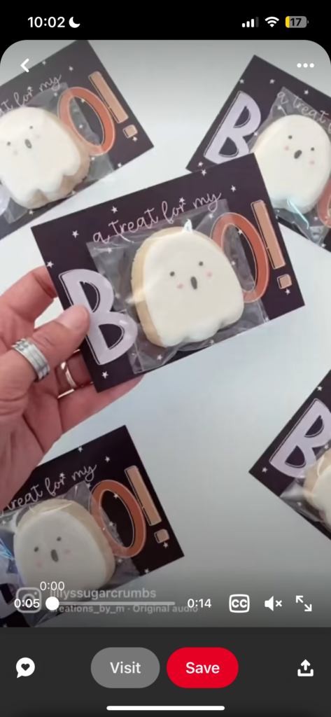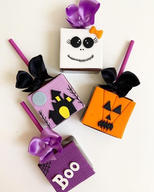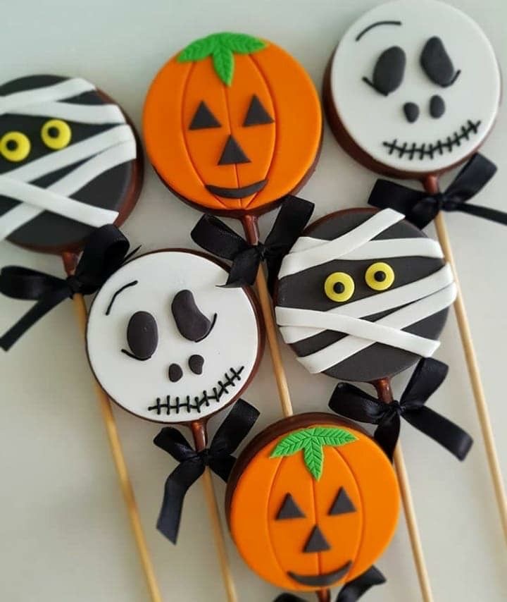Alfajor relleno de dulce de leche decorado con temática del cáncer de mama.