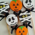 Alfajor relleno de dulce de leche decorado con temática del cáncer de mama.