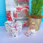 Vasos decorativos con chocolate instantáneo en polvo con Kisses y dulce.