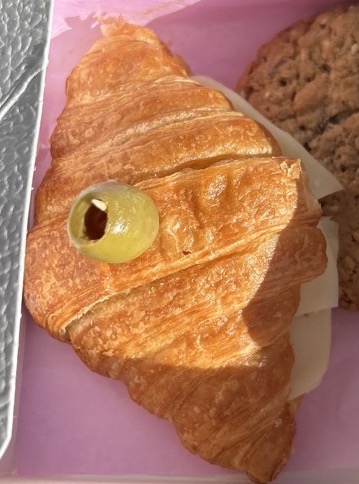 Sidra o espumoso, vino tinto Loma Negra, galletas danesas, wafer rolls, bombones Ferrero Rocher y bastón...