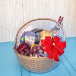 Whisky Dewar’s, manzanas, uvas, panettone, turrón, marshmallows, bombones Ferrero Rocher, frutos secos y canasta.