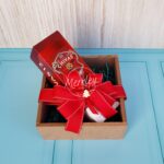 Caja de cartón con scrub corporal, bolsa de Kisses y vaso térmico personalizado en vinilo.
