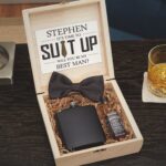 Taza, cervezas de latas, llavero de madera, frasco de frutos secos y jabón orgánico masculino.
