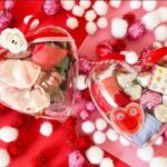 Frasco acrílico en forma de corazón personalizado, relleno con un bombón y manita limpia.