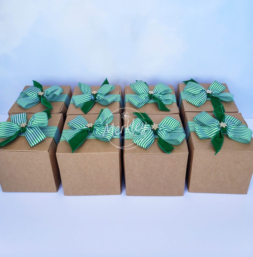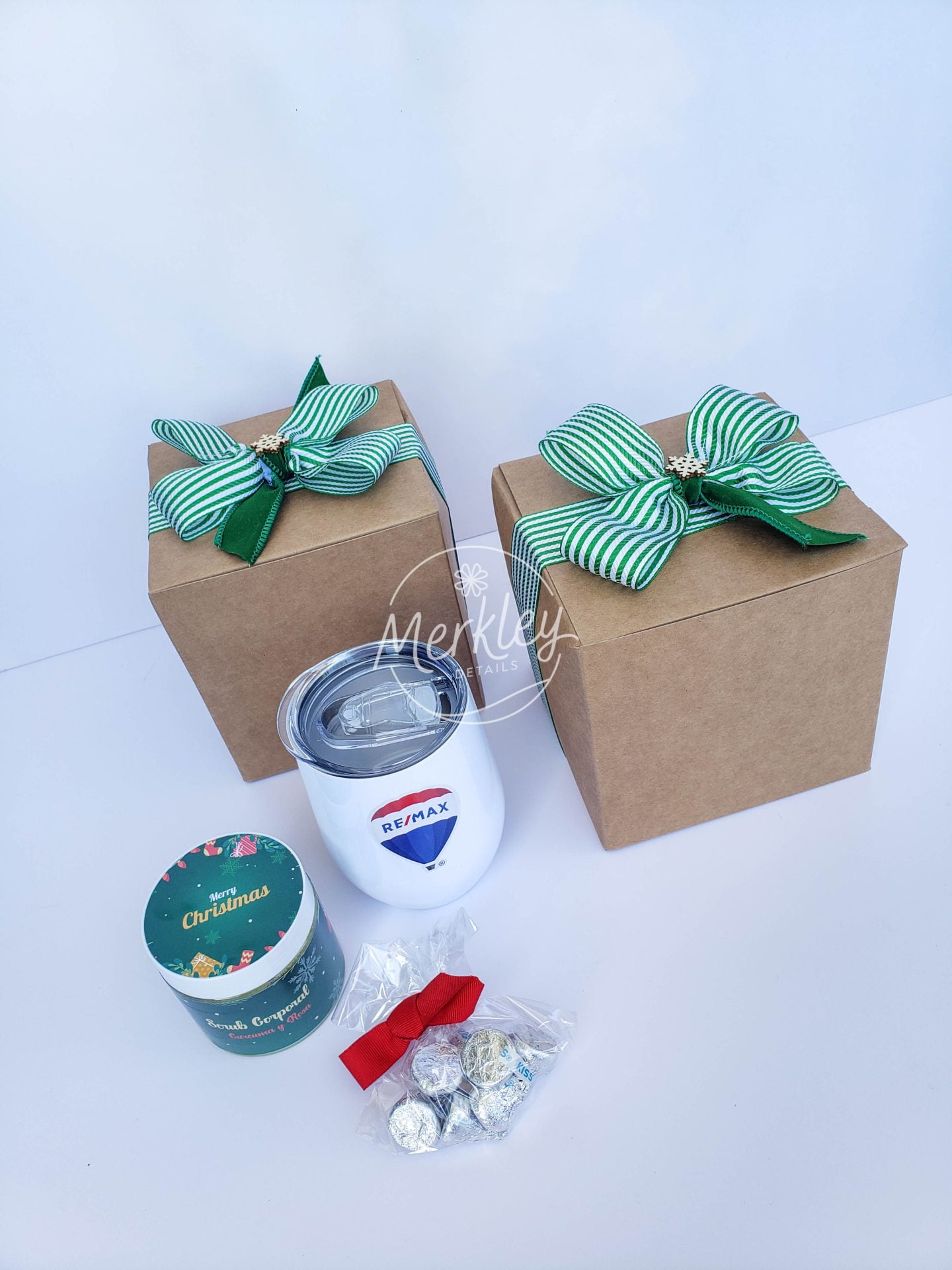 Caja de cartón con scrub corporal, bolsa de Kisses y vaso térmico personalizado en vinilo.