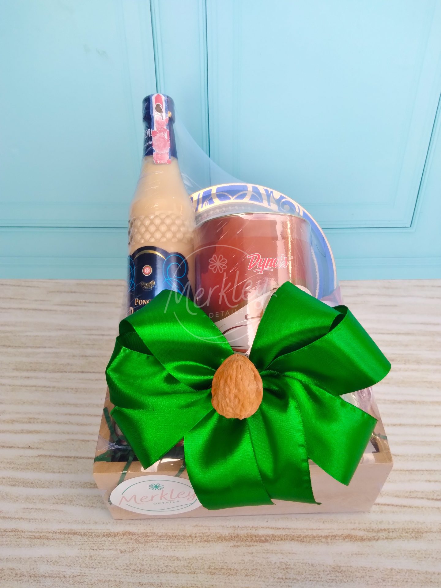 Ponche Bordas Premium, galletas danesas, sticks de dulces.