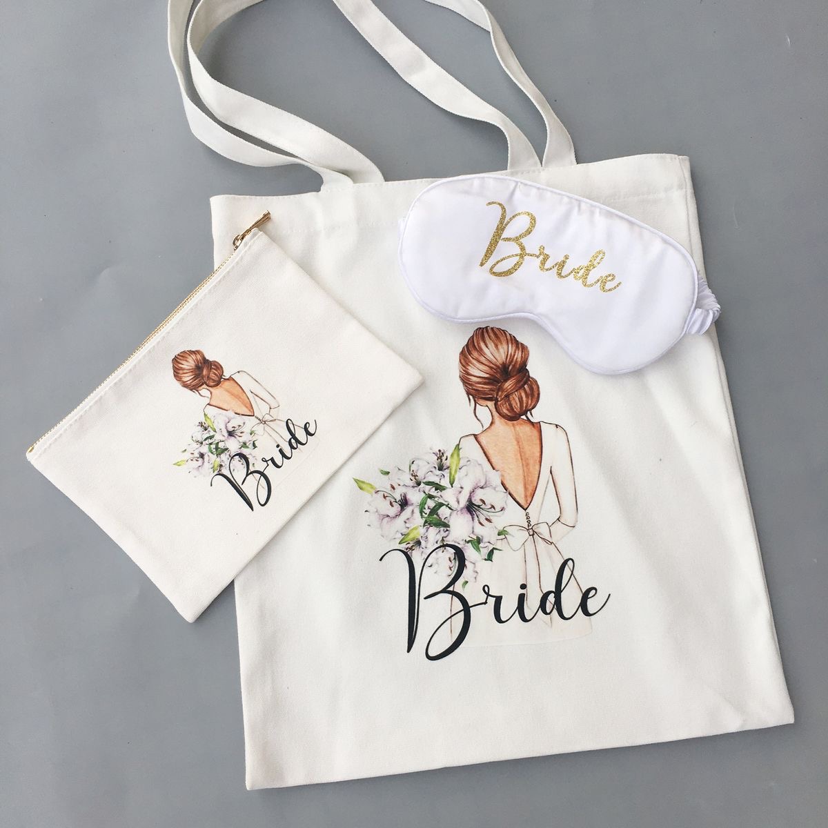 Bolso en canvas, cosmetiquera en canvas personalizadas y antifaz para dormir.