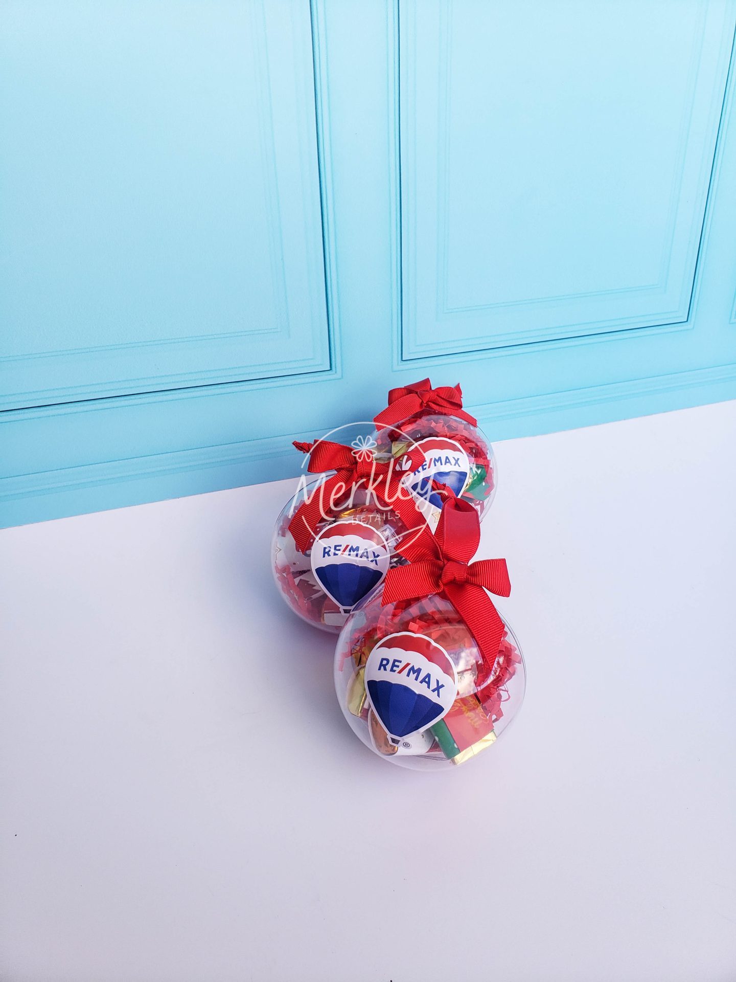 Esfera navideña personalizada y rellena de chocolates.