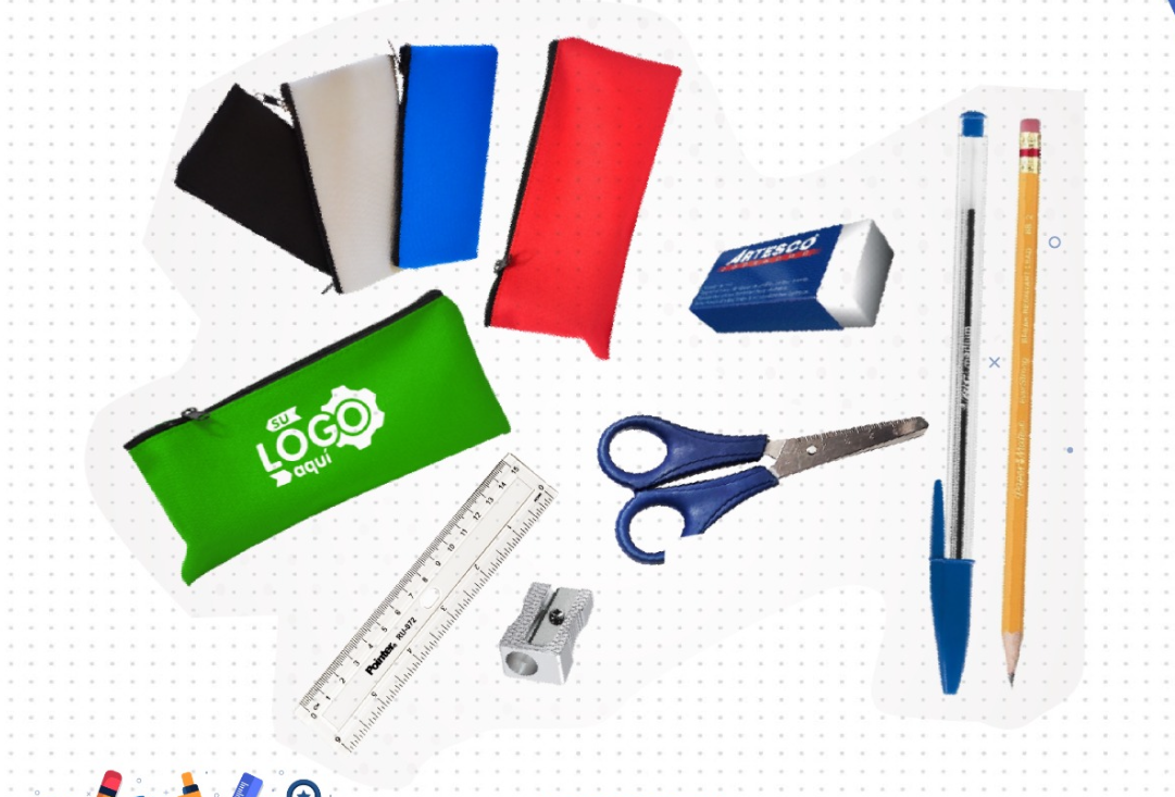 Estuche que contiene: 2 lápices, 1 lapicero, 1 regla, 1 borrador, 1 pegamento, 1 sapuntas y 10 stickers para personalizar.