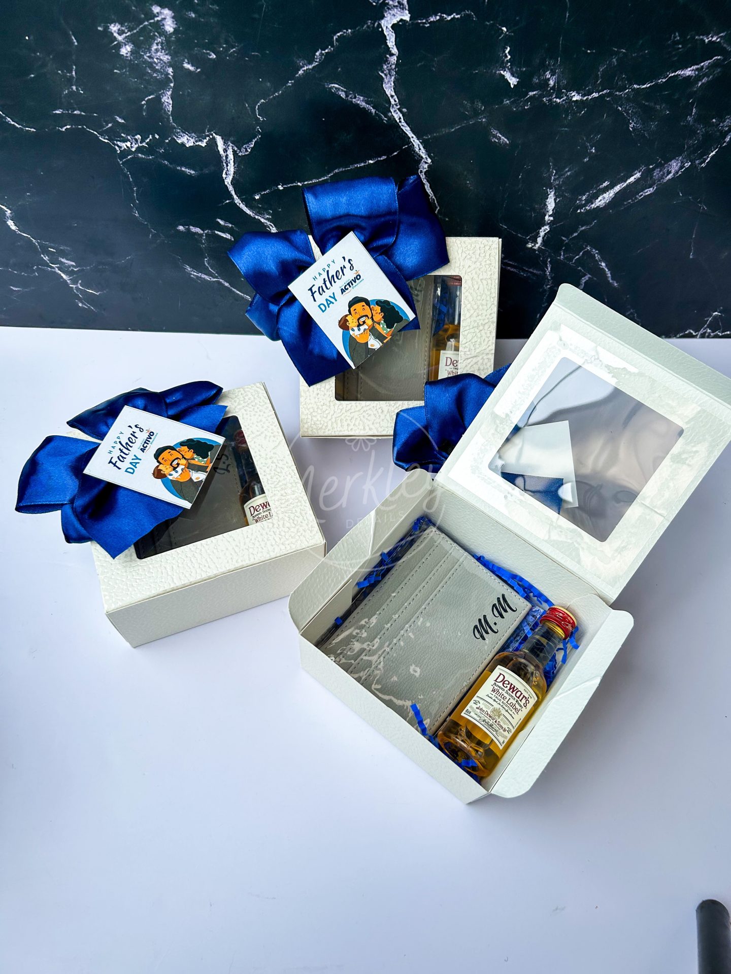 Set de portatarjetas y mini whisky.
