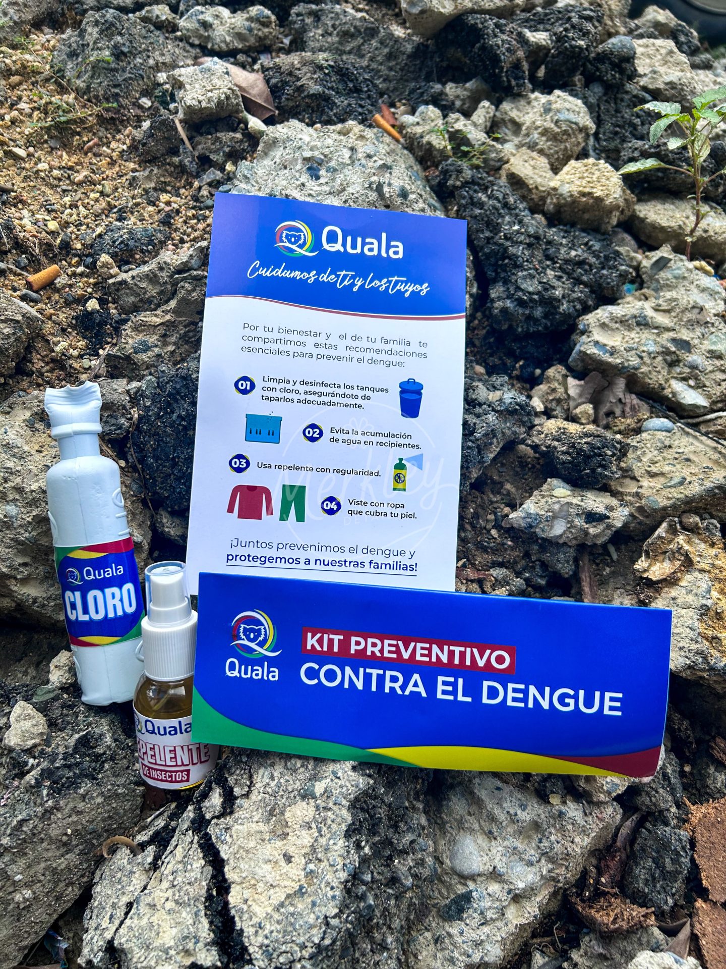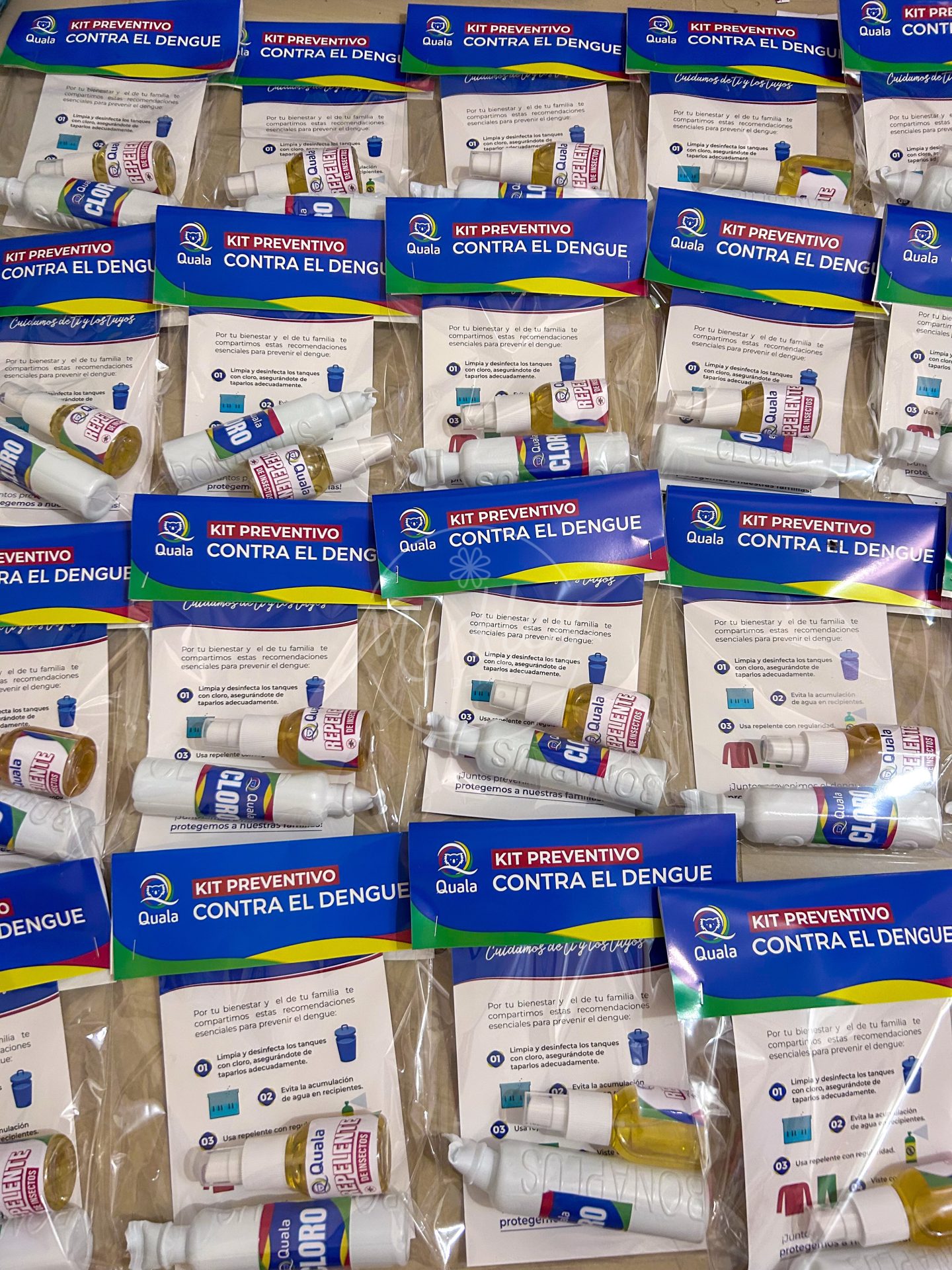 Kit de flyer preventivo con muestra de repelente y cloro.