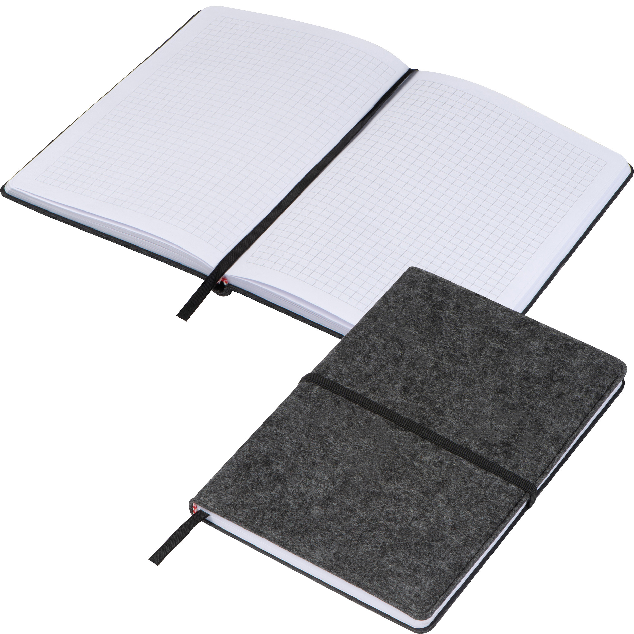 Libreta media carta en yute, en colores azul, negro y marrón.