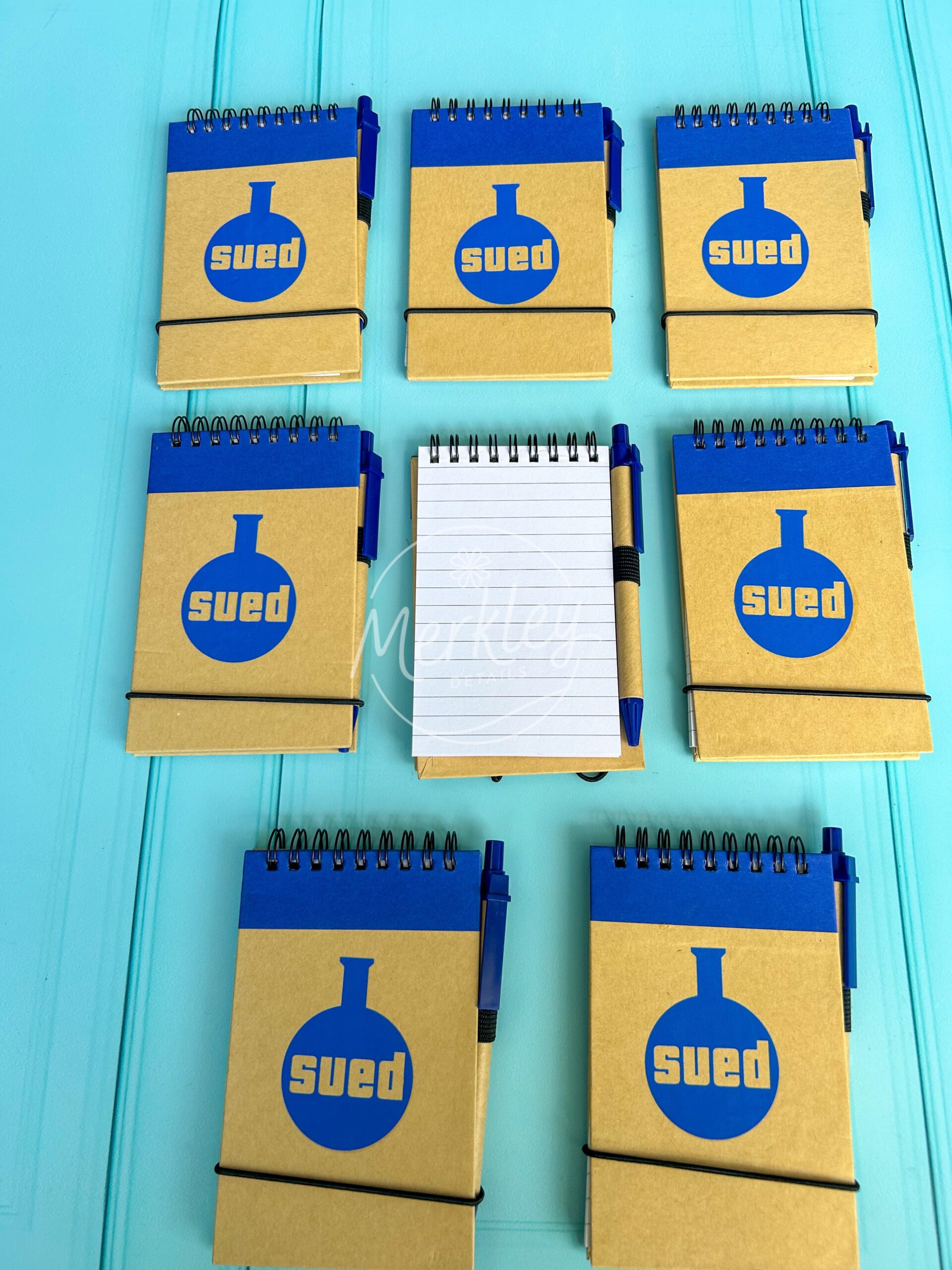 Libreta de apuntes pequeña con lapicero incluido personalizada; 5.5×3.5 in.
