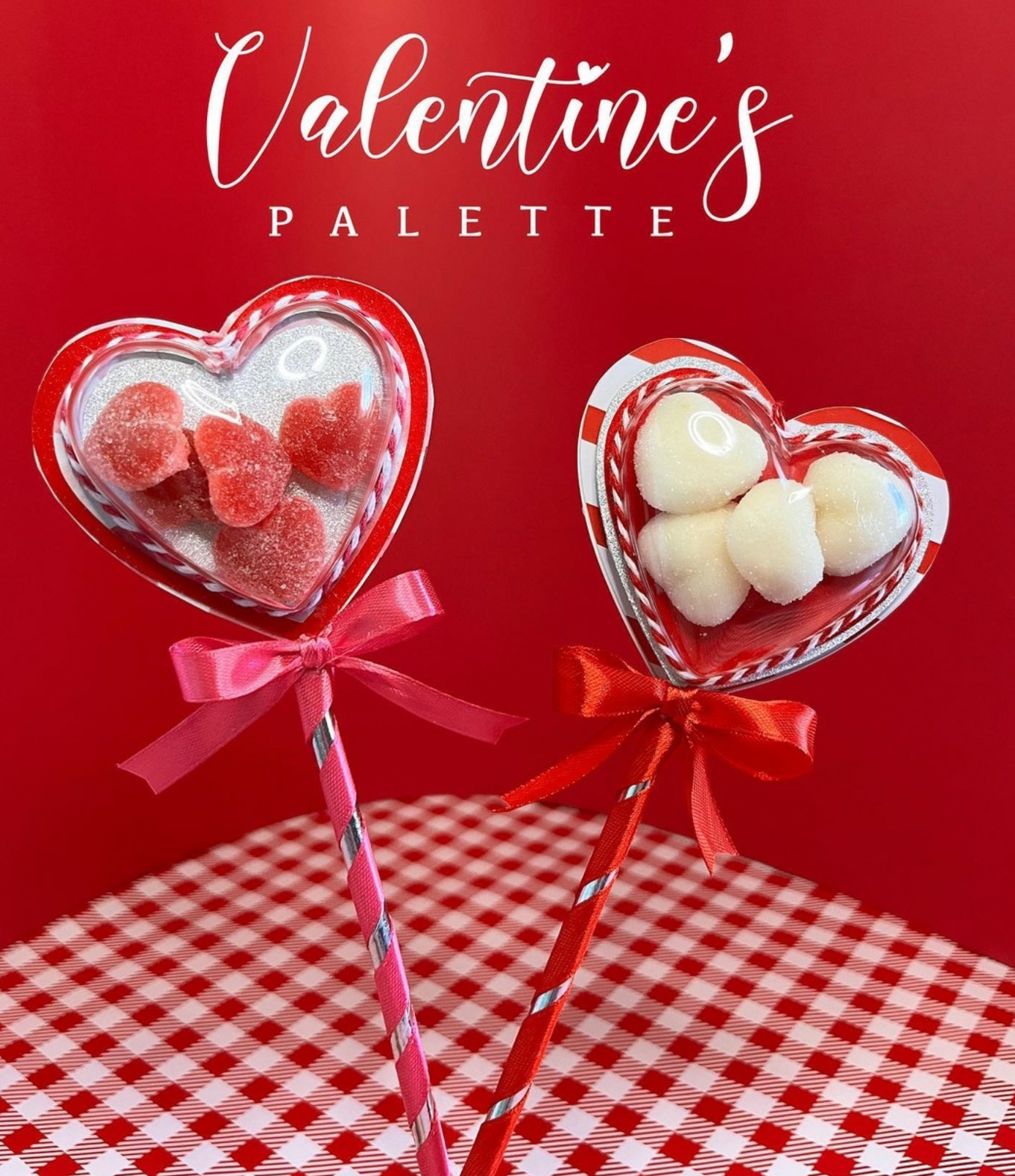 Paletas de gomitas dulces en forma de corazón.