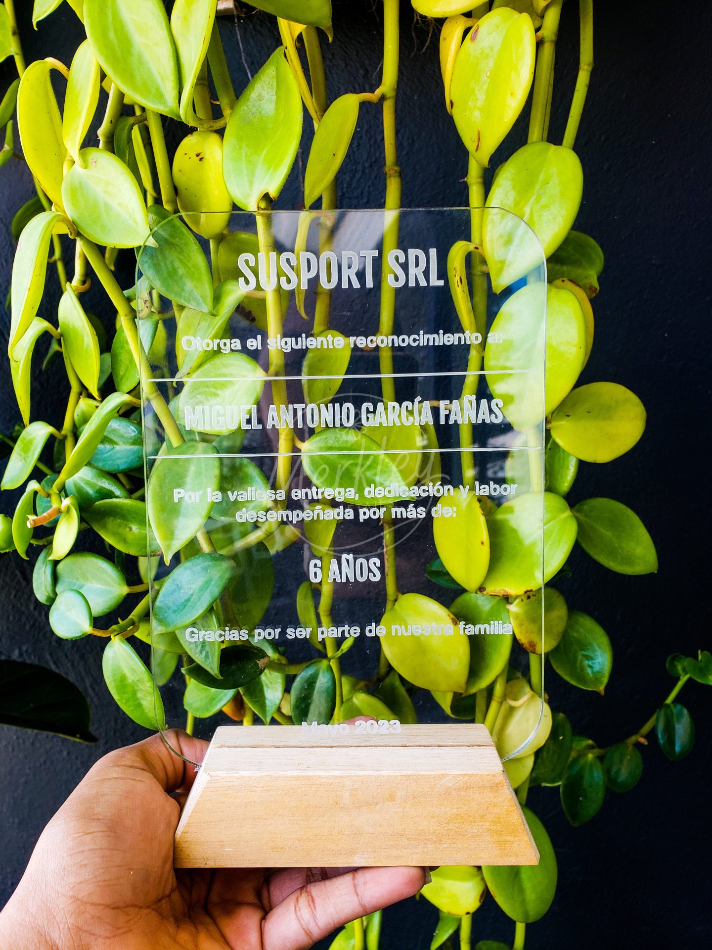 Placas grabadas en acrilicos y base madera.