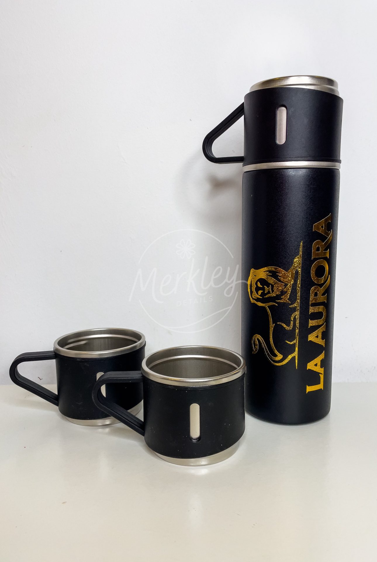 Set de cafe 2 vasos y termo personalizado termicos, conserva la temperatura por 12 horas