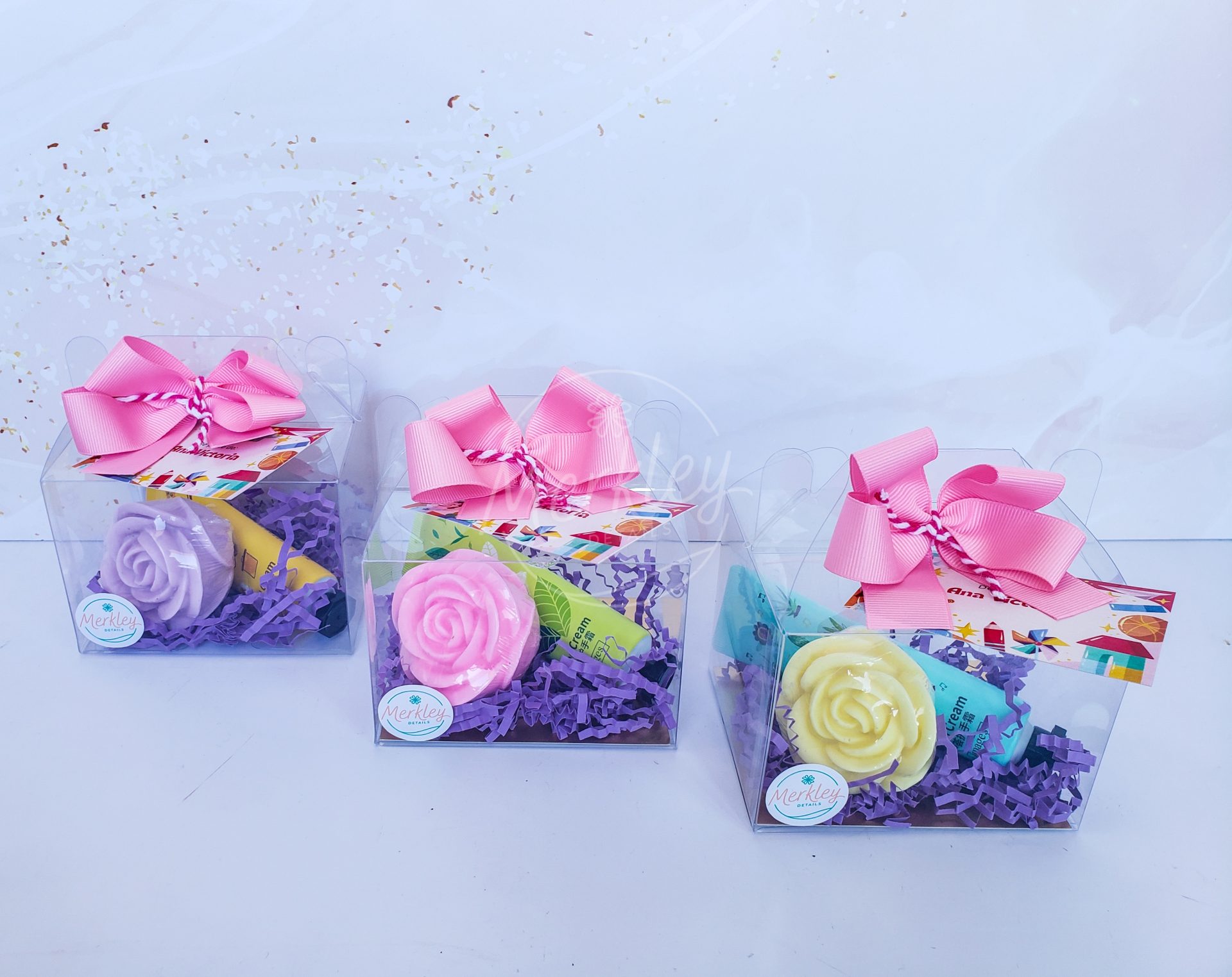 Crema de manos de cartera y jabón floral.
