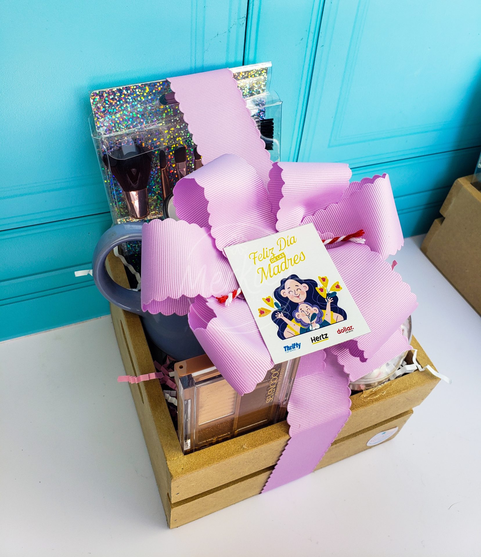 Set de make up, sales corporales y taza personalizada.