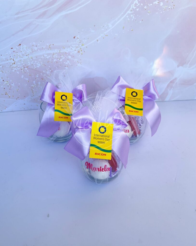 Vaso corto personalizado, esmalte, pintalabios y bath boms.