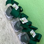 Cesta de madera libreta de apuntes, taza personalizada en vinil adhesivo y cajita con kisses.