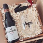 Cesta de madera con jarra cafetera personalizada en vinil adhesivo, bolsa de casabitos, frutos secos y...