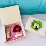 Vaso termico personalizado en vinil, mini bebida, bombones ferrero rocher y hersheys nuggets en base madera.
