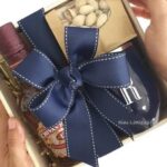 Vaso termico personalizado en vinil, mini bebida, bombones ferrero rocher y hersheys nuggets en base madera.